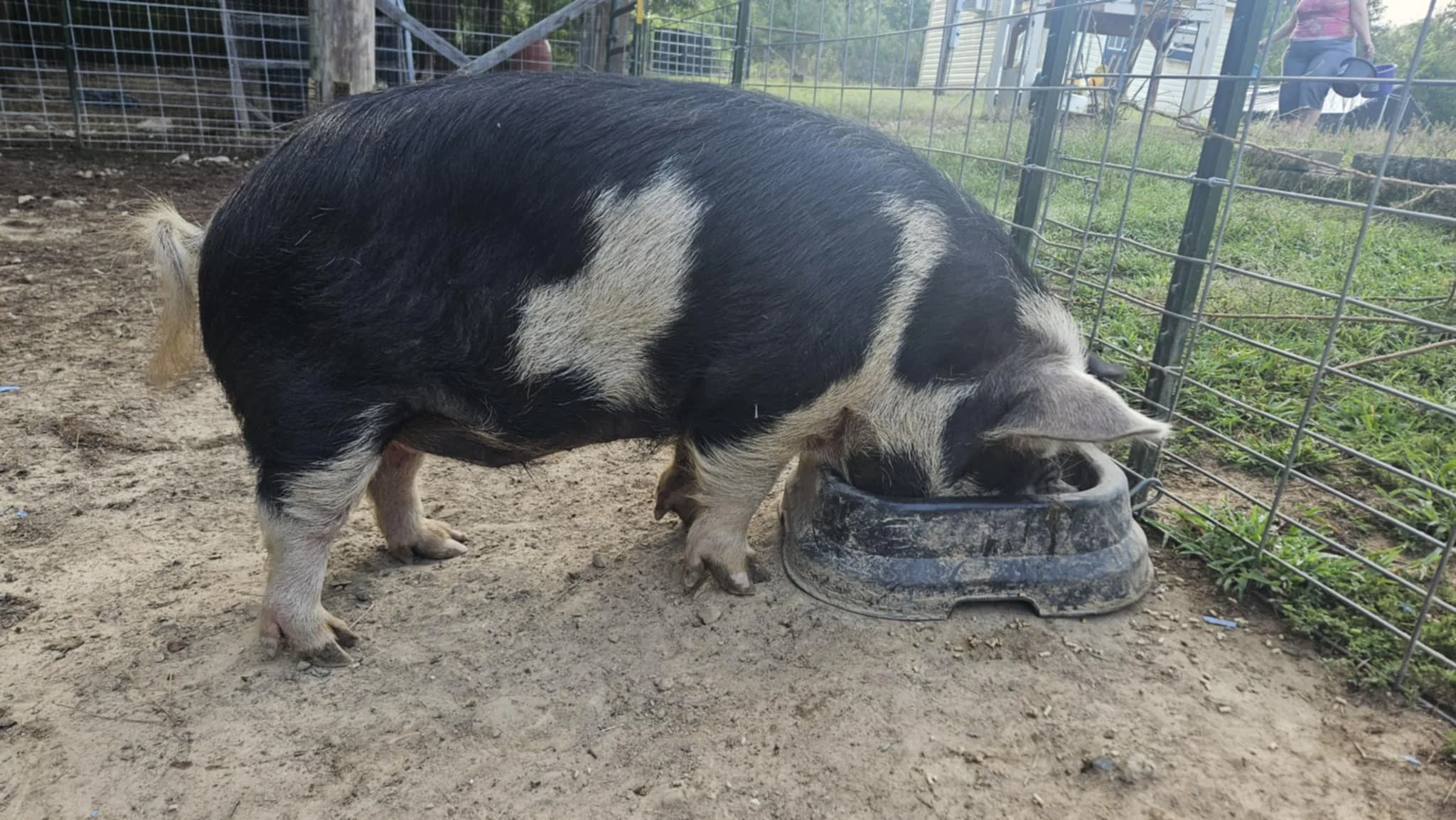 Sir Escanor is our big sweet boy. This big man reached 200 in 12 and then kept going! He was our first boar and we could not have asked for a better boar. Our trip home from Oklahoma was interesting to say the least, all he wanted was out of the carrier and into a lap. He favorite things in the whole world are belly scratches and snacks, and he would even trade some snacks for belly rubs. His bloodline is the rarest boar line in the united states, but we love him the most for his sugar sweet personality and overall confirmation. He is homozygous for wattles