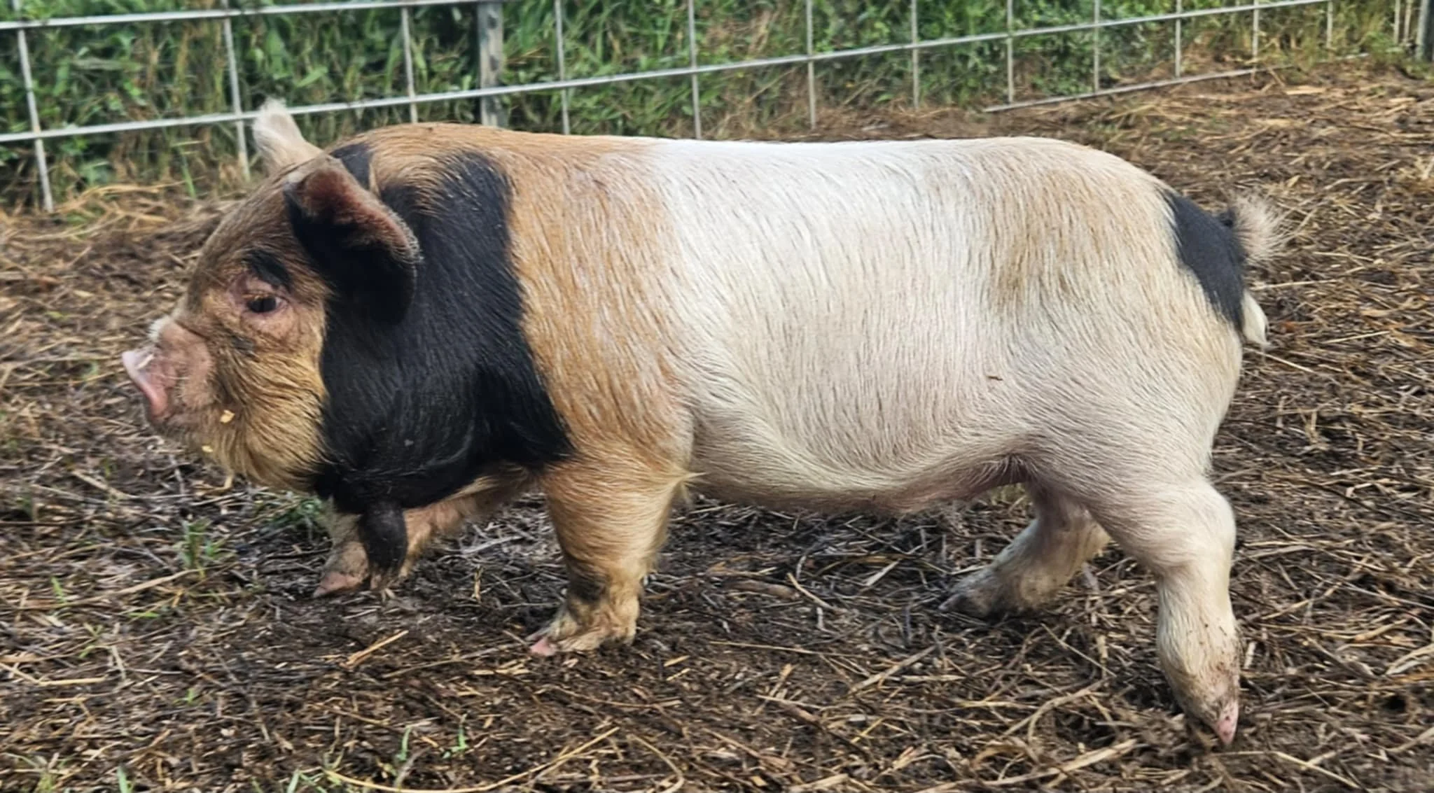 Bartok oh sweet sweet Bartok. This big boy is almost a full cream boarling. He is the most chill boy of the group and he is most happy laying next to you to get scratched. Largest of the litter and a true high white with his pink skin. Gentle with his smaller siblings and always looking for a scatch, he would make a wonderful addition to a herd. Bartok has 1 wattle but that does not diminish his over all conformation. He will be ready August 2nd! $600- 57171P